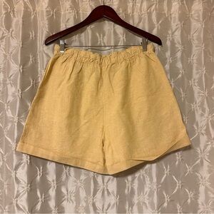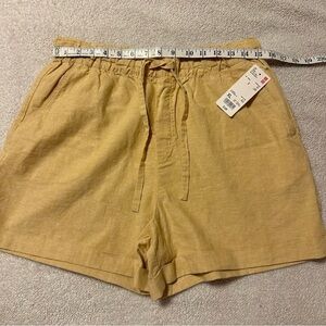 UNIQLO Yellow Cotton Linen Blend Relax Fit Shorts High Waist Cuffed