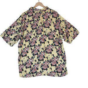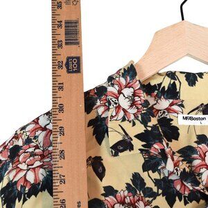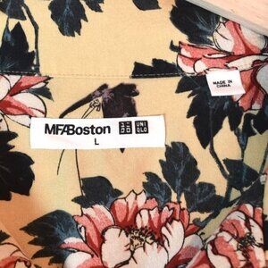 UNIQLO x MFA Boston Yellow Floral Shirt Sz L Short Sleeve Button Front Japanese