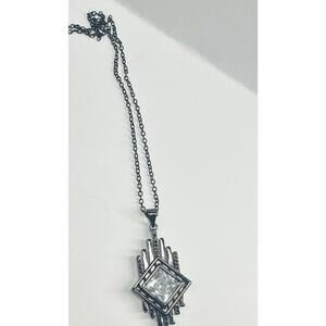 This is part of RBP Galactic collection. Featuring a large diamond shaped lab created white topaz on a glam, geometric futuristic style pendant that's black gold plated. Has a 22" adjustable chain with a lobster clasp! Great condition, statement piece! In perfect condition, no original bag but packaged gift ready. Free shipping!