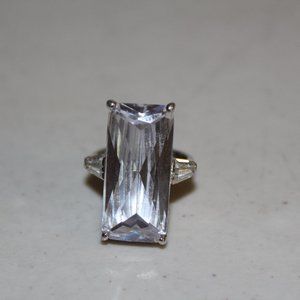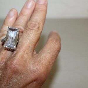 UNIQUE LARGE CUBIC ZIRCONIA STATEMENT RING SILVER
