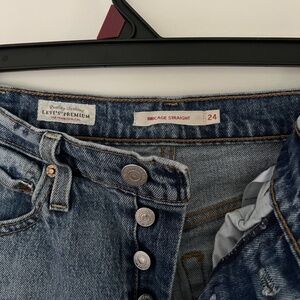 LEVI'S Ribcage Straight Leg Jeans Size 24. 25 inch inseam. Great, unique find, super cool detail. See small paint stain in photo - price reflects.