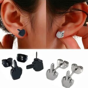 Unisex Punk Middle Finger Black Stainless Steel Stud Earrings