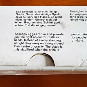 Set of 2 of Rosenthal Studio-Linie "Schnaps-Ei" (Schnapps Egg) glasses, which are adorable vintage, egg-shaped shot glasses designed to sway or "roly-poly" on a ring around their center of gravity. These unique, mouth-blown crystal glasses are known for their playful "roly-poly" or "wobble". Created by Claus Josef Riedel in the early 1970s, these egg-shaped glasses have a rounded, weighted base. Instead of standing upright, the empty glasses sway and tilt on a ring around their center of gravity. They are designed to stabilize only when a drink is poured into them. Typically used for serving schnapps, liqueurs, or whiskey. New, never used with stickers still intact and in original box (box has some marks).