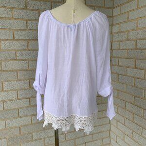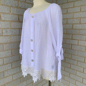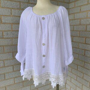 UNIQUE SPECTRUM WHITE LACES BLOUSE SIZE 1X 60% RAYON 40% POLYESTER