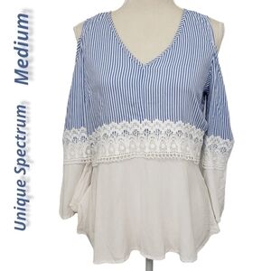 Unique Spectrum Cold Shoulder Bell Sleeve Top M VGUC