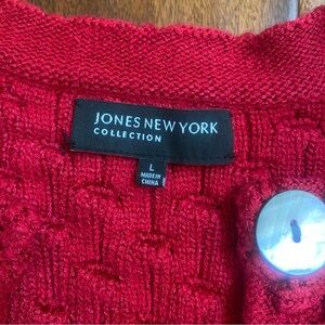 UNIQUE Sz Lrg Jones New York CHUNKY KNIT Cardigan Sweater Red Preppy