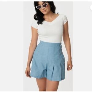Brand new pair of Unique Vintage chambray Sailor shorts size XS/2. Pleated with cute buttons up the side.
