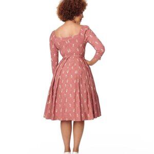 UNIQUE VINTAGE Womens Rose & Pink Mauve Tulip Print Lamar Swing Dress Size 10-12