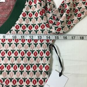 UNIQUE VINTAGE XS white green tulip floral fair Isle 1970 Retro Sweater NWT B51