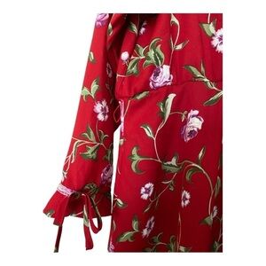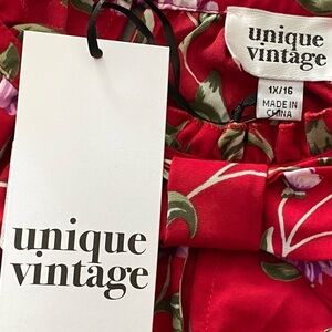UNIQUE VINTAGE dress, size 1X / 16. Red with floral. Long sleeves, MIDI.
