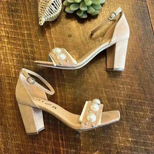 Feel sophisticated at every turn with the Danai sandal from Unisa. This two-piece pair features oversized faux pearls with round studs, a chunky block heel, and squared off toe for fresh appeal.