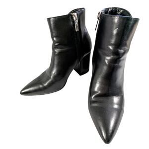 UNISA! MILANI BLACK VEGAN LEATHER CHUNKY HEEL, POINTY TOE ANKLE BOOTS! SZ 5.5M