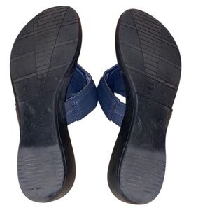 UNISA Rubber Wedge Thong Sandals in Navy and Trimmed in Silver Tone Size 10M