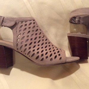These very comfortable and sturdy-heeled stylish sandals can surely be worn year-round: go casual or dressy; great looking with jeans, slacks, skirts or any length dress=very fashion versatile! Wear them at work or for leisure time; why they can even be your dancing shoes they're so comfy & sturdy! Beige suede mesh upper, wood 3"block heel, adjustable leather ankle strap with buckle. Unisa brand. NWOT. Size 7.