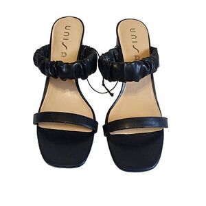 Sophistication and elegance unite in the Unisa Cyla women’s slide sandal. This open-toe sandal features a soft square toe and a synthetic upper ruched band across the top. The 3" block heel allows you to walk comfortably, while the classic style and neutral color will accentuate any outfit for a timeless look.