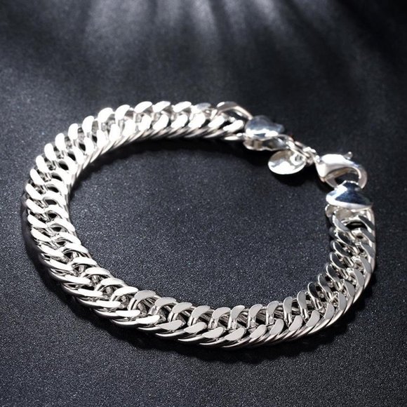 UNISEX 925 STERLING SILVER • 10mm Unique Wide Link Curb Chain 8 inch BRACELET