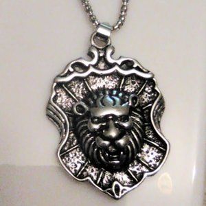 UNISEX Graphic Silver Ancient Medieval LION Shield Design Pendant Necklace