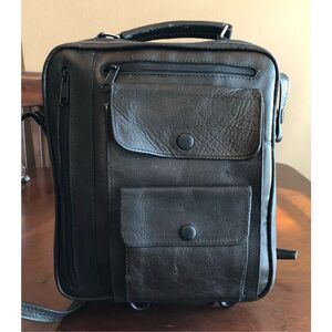 UNISEX LEATHER - Utilitarian Black All-Leather Bag w/Multi Compartments