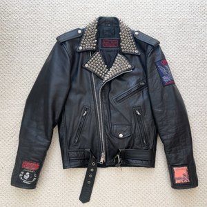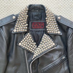 UNISEX Leather World by Lucky Leather Biker Motorcycle Black Leather Jacket Sz32