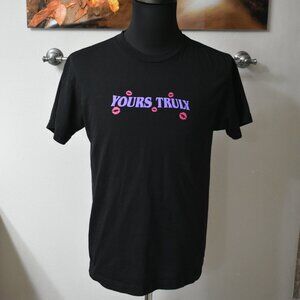 Embrace the effortless vibe of the Yours Truly T-shirt designed for those who appreciate a comfortable yet stylish limited edition rare t-shirt unisex style mens or womens size medium however comes reduced to a adul size small. an ideal addition to any casual wardrobe, offering a perfect blend of simplicity and comfort. Proudly made in the United States, it features a classic style that's versatile enough to suit various occasions. Whether you're out for a laid-back meet-up or just enjoying a relaxed day at home, this rare Limited edition t-shirt is your go-to for staying cozy and looking sharp.