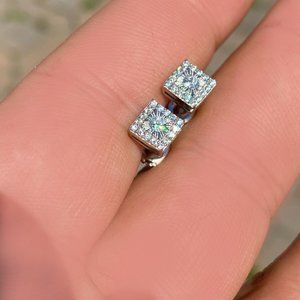 UNISEX Real Solid Sterling Silver Iced Earrings