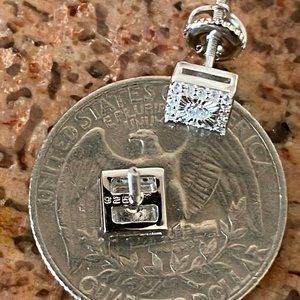 UNISEX Real Solid Sterling Silver Iced Diamond Cut Hip Hop Earrings Studs