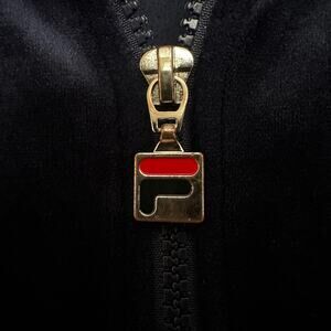 Fila Maureen Velour Jacket . This retro cool hooded jacket features a plush navy blue velour construction, ribbed banding, classic Fila branded trim down both arms, and embroidered Fila logo on chest.
