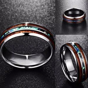 UNISEX TUNGSTEN HAWAIIAN KOA WOOD ABALONE RING, CUTE RING, SHINY RING.