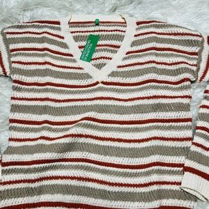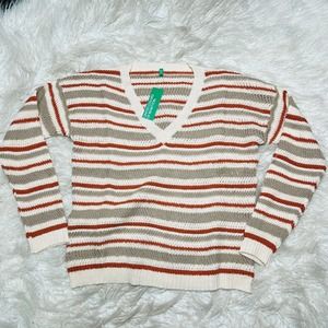UNITED COLORS OF BENETTON WOMENS KNIT STRIPED V-NECK SWEATER