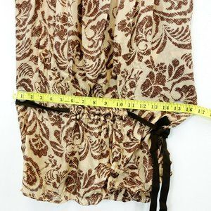 UNITED COLORS OF BENETTON Women Tunic Top Cream Brown SMALL Floral Flared Sleeve Drawstring Belted features- Scooped Neckline Brown colored Blouse Drawstring on Waist flared hem
