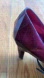 Most comfortable CINDERELLA shoes you'll find! Black faceted architectural design, with REMOVABLE black leather straps. Plumb (slightly see-through) body, black straps. Mint condition! Size 38 (US 7.5 / 8)