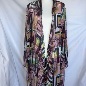 UNITS Multicolor Abstract Print Sheer Tie Front Maxi Duster Caftan