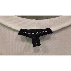 VERY NICE UNIVERSAL STANDARD WHITE RIBBED SHORT SLEEVE MODAL LOUNGE SHIRT IN A SIZE LARGE OR 22-24. THE BUST IS 40" AROUND AND LENGTH IS 32". IN EXCELLENT CONDITION!