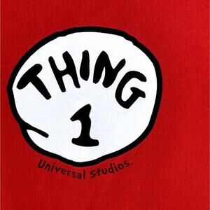 UNIVERSAL STUDIOS YOUTH RED WHITE BLACK "THING 1" SHORT SLEEVE CREW NECK T-SHIRT SIZE MEDIUM