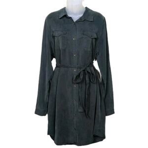 UNIVERSAL THREAD Black Chambray Long Sleeve Shirt Dress Belted Women's Large