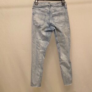 UNIVERSAL THREAD High Rise Skinny Raw Hem Preowned Jeans Size 2. Cute! Light Wash. Waist measures approx 24” wide. Inseam measures approx 27” long. Rise measures approx 9”.