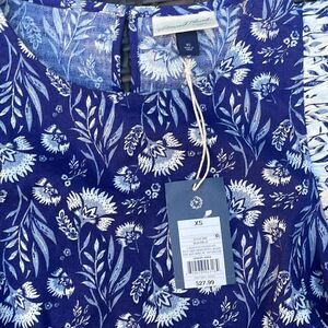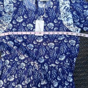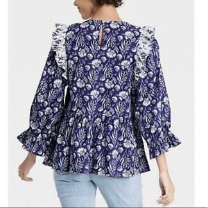 Universal Thread Blue Floral Print Exaggerated Ruffle Puff 3/4 Sleeve Ruffle Top Blouse Size XS New With Tag