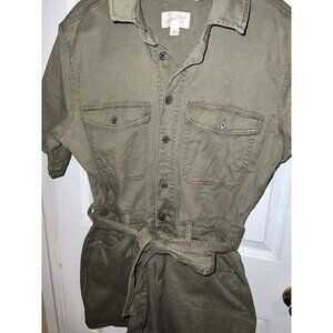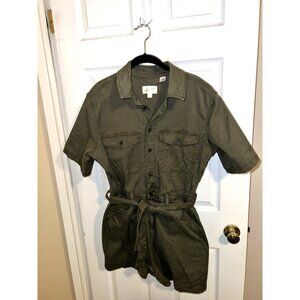 UNIVERSAL THREAD Stretch Olive Cotton Lyocell Short Sleeve Button Romper Sz 10