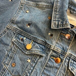 UNIVERSAL THREAD Women’s Denim Jacket, with Stitched Floral Details, Size Small.