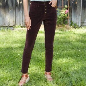 UNIVERSAL THREAD dark burgundy corduroy high rise skinny jeans with metal button fly, comfortable 93% cotton, 5% polyester, 2% spandex