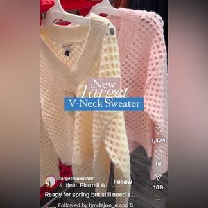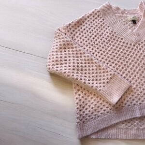 Trending net style knit pastel pink oversized v-neck Universal Thread sweater. Drop shoulder oversized boxy styling. Medium weight, great for layering. True color is the close-up and the last Target image… very pretty pastel pink. Beautiful condition. Labeled XXL but great oversized look for XL.