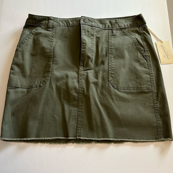 UNIVERSAL THREADS.. NWTS..ARMY GREEN JEAN SKIRT…SIZE 12…WAIST 16-17” LENGTH 17”