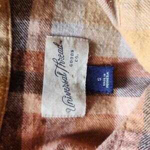 UNIVERSAL TREAD Brown Plaid Long Sleeve Button Up Boyfriend Shirt Size S