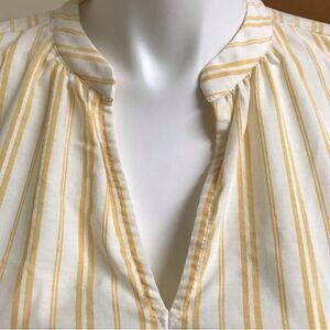 🔮 UNIVERSAL THREAD | Yellow Striped Tie Top. EUC, but you can see in the fourth picture there is a discolored thread. Barely noticeable. Elastic wrists. Size M.