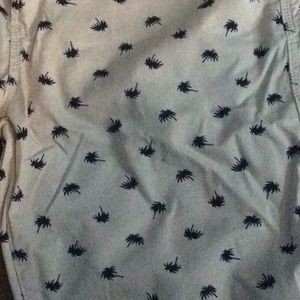 UNIVIBE...BOYS BEIGE COLORED SHORTS WITH NAVY BLUE PALM TREES SCATTERED THROUGH OUT...SIZE:18...WORE ONE TIME...NO RIPS/NO STAINS