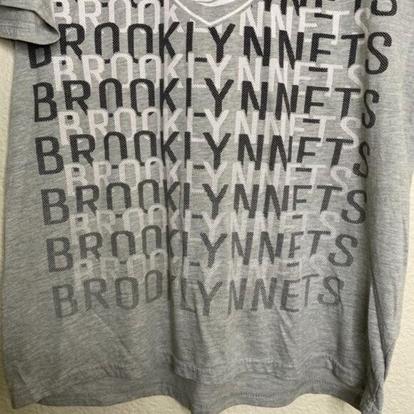 UNK NBA Blue Label Gray Brooklyn Nets Spellout Tee Large