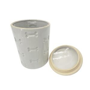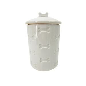 The Bone Appetit collection is made of porcelain and features a pure white finish. This treat canister has been branded with a cute dog bone. With simplicity and charm, your dog will genuinely love it!