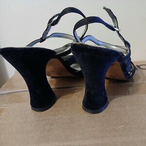 UNLISTED Velvet Black High Heels 5.5 Cuban Strappy sling back Formal Sexy!