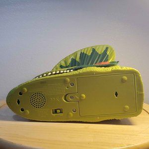 UNO Attack Jurassic World Dilophosaurus Card Launcher Dinosaur Head + 87 cards. It's missing the expandable neck frill. Tested and works great. Head does not need to be pressed hard to do it's job. If pressed to hard, it seems to get stuck, but easy to pull back up. Makes roaring and hissing sounds whether it spits cards out or not. No box. Battery case is clean as a whistle. Uses 3 "C" batteries. Measures 8" tall x 9" long. Weighs 1lb. 11.9oz. What you see is what you get. I ship VERY SAFE and VERY FAST.