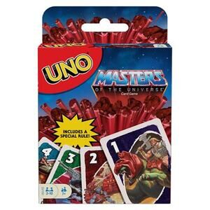 The UNO card game everyone loves gets a powerful look with He-Man and the Masters of the Universe. Featuring dynamic graphics of MOTU characters from powerful heroes to deadly sorcerers it also includes a unique rule -- the Power of Greyskull Card. To use it the player must hold it above their head and say By the power of Greyskull I have the power!! All other players then draw 3 cards. Game play is like classic UNO: players match cards by color or number in a race to get rid of all the cards in their hand. When down to one card they must shout triumphantly like He-Man UNO! This edition of the family-favorite card game makes a great gift for players 7 years and older especially MOTU fans. Colors and decorations may vary.